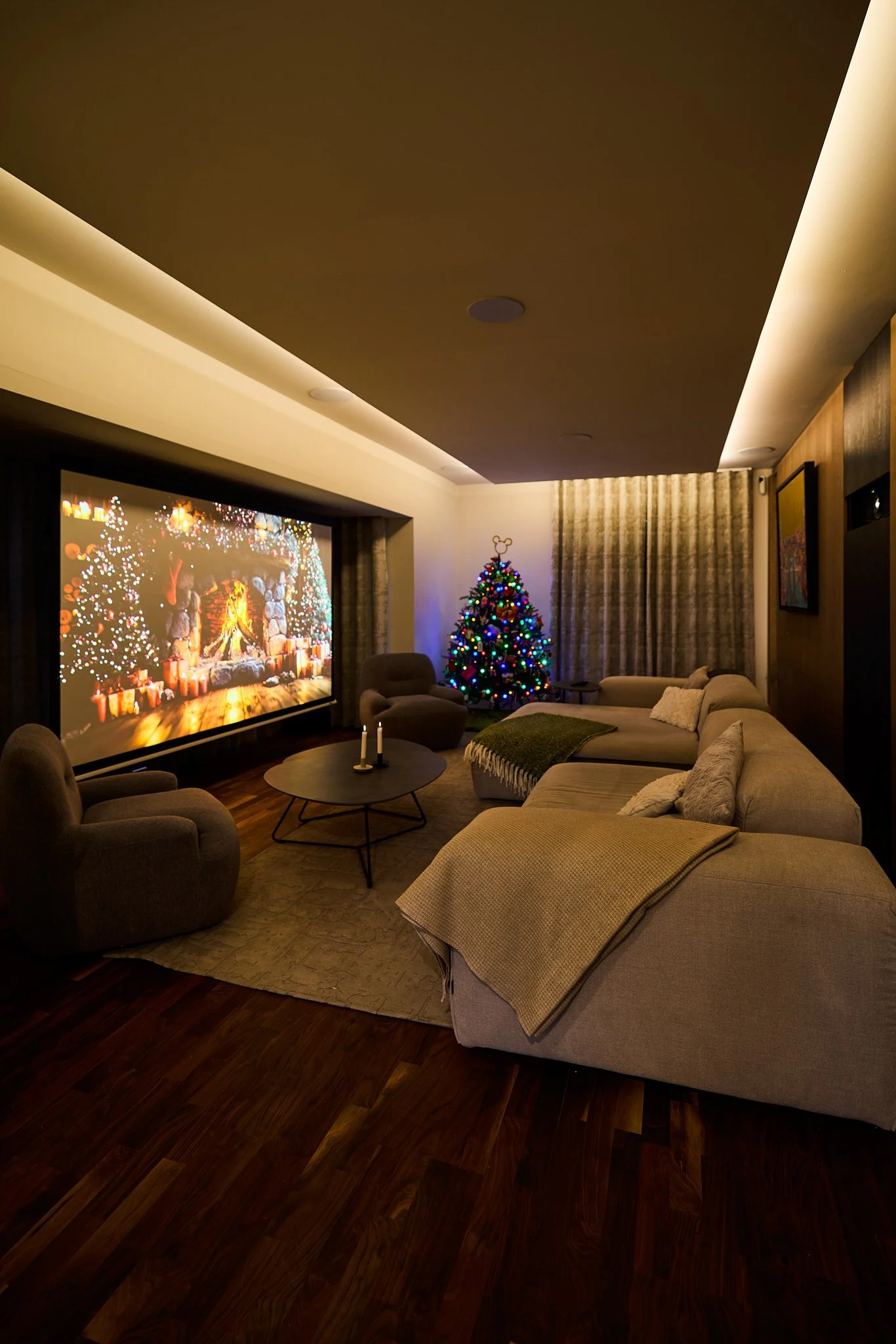 Originally a standard living room, the cinema space required a complete rethink of its layout to unlock its potential.